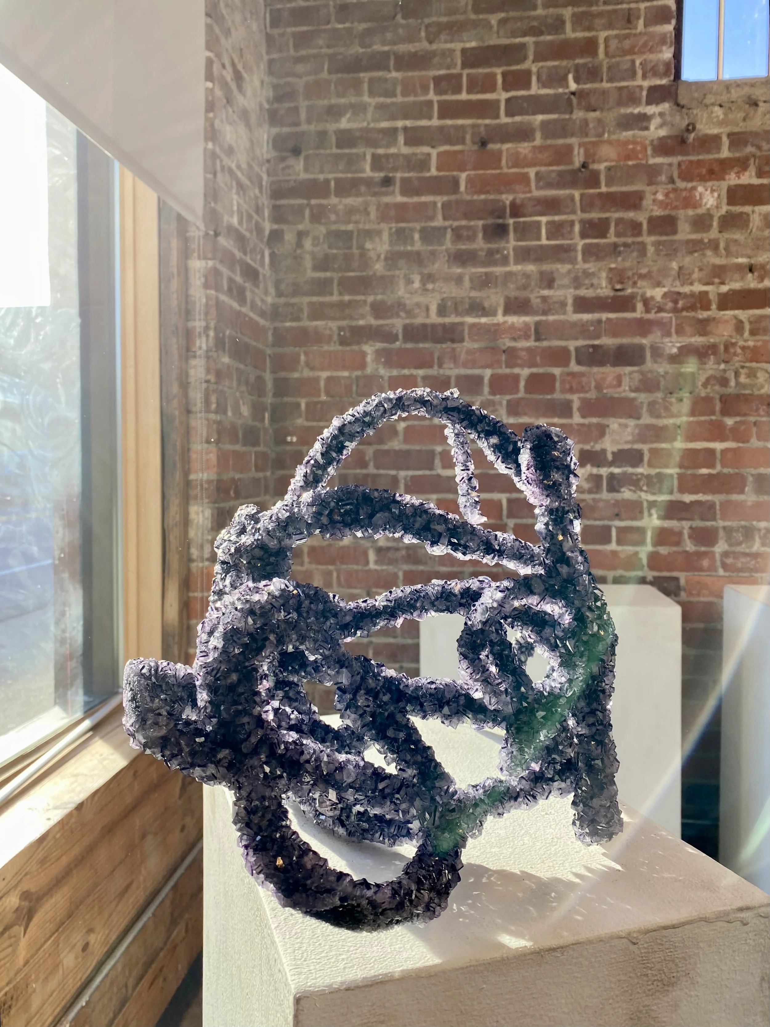 Here I seek to create work that emphasizes the momentary state in which it is both synthesized into existence and viewed. Hence, I have allowed the piece to grow white as the materials partially reclaim their natural hue (see below).
